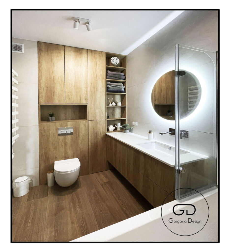 Trzy łazienki z kolejnej realizacji naszego projektu na nowym osiedlu Lublin – Szerokie. Łazienka gościnna oraz master bathroom utrzymane są w ciemnej kolorystyce, natomiast łazienka dziecięca jest ich przeciwieństwem. Wszystkie jednak nawiązują do wyglądu całego mieszkania, które ma w sobie dużo elementów drewnianych połączonych z czarnymi detalami, otulonych jasno beżową kolorostyką.